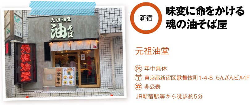 新宿・歌舞伎町「元祖油堂」の店舗情報